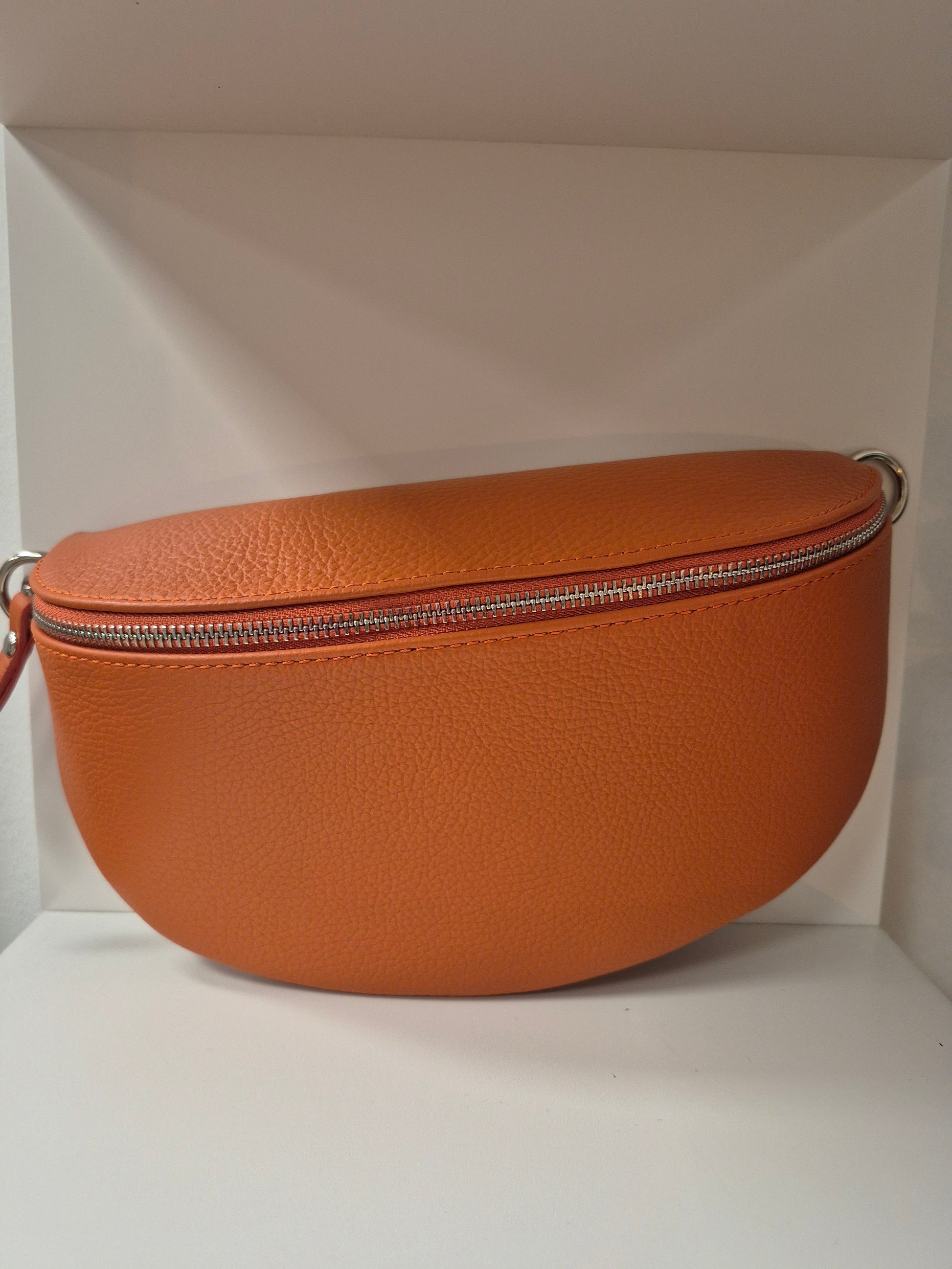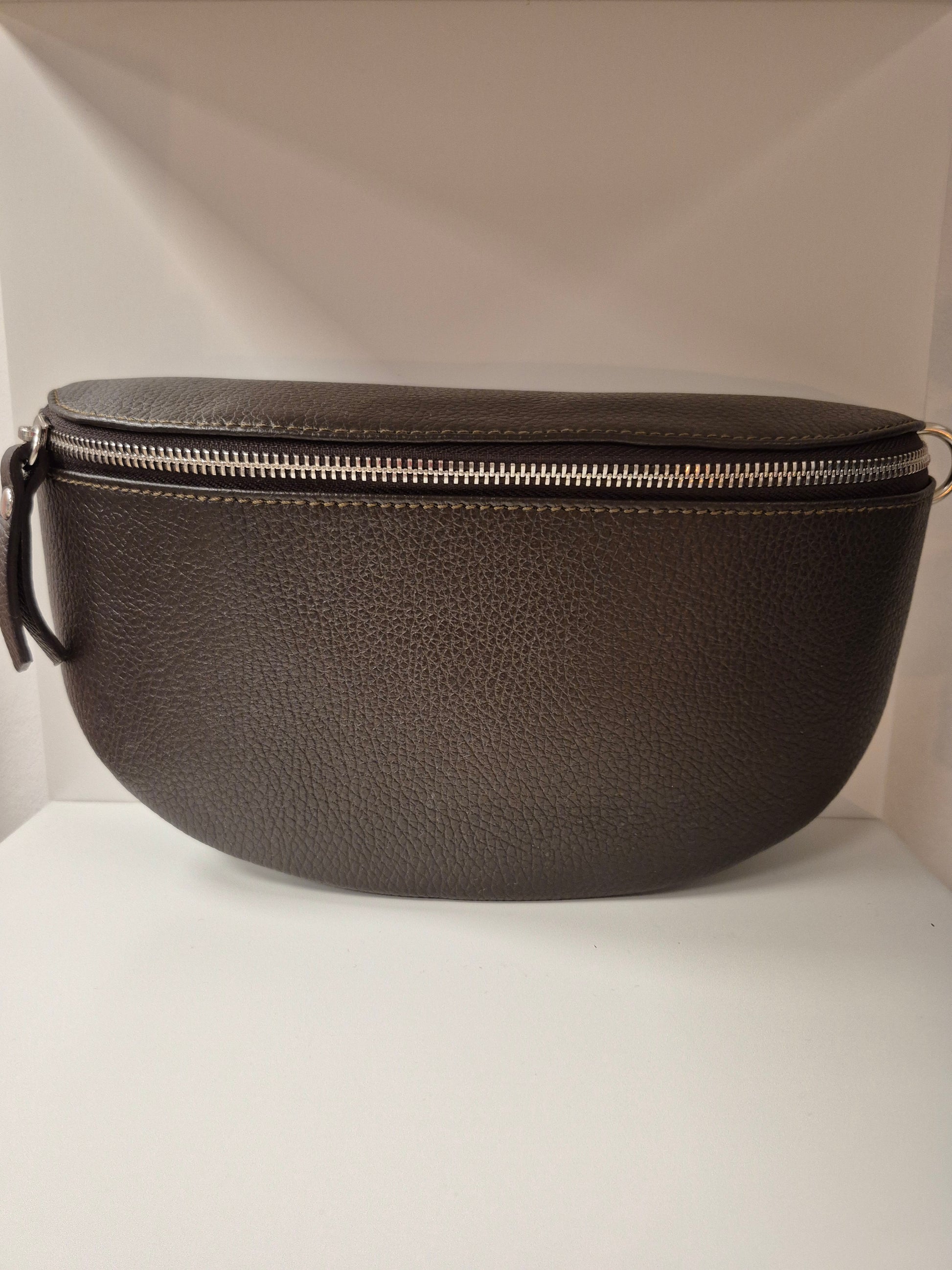 Ledertasche in der Größe L 27cm, H 13cm, T 8cm, mit langem Schulterriemen (crossbody zu tragen)